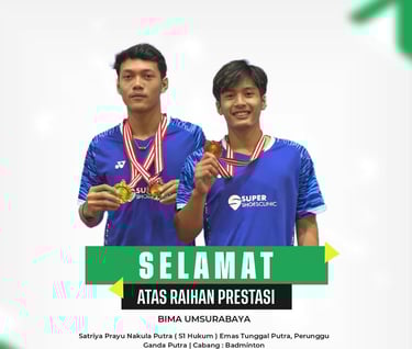 Perunggu Ganda Putra Bintang Arsy Athallah (Mahasiswa S1 Psikologi), Satria Prayu Nakula Putra (Mahasiswa S1 Ilmu Hukum) Di Cabang Olahraga Badminton
